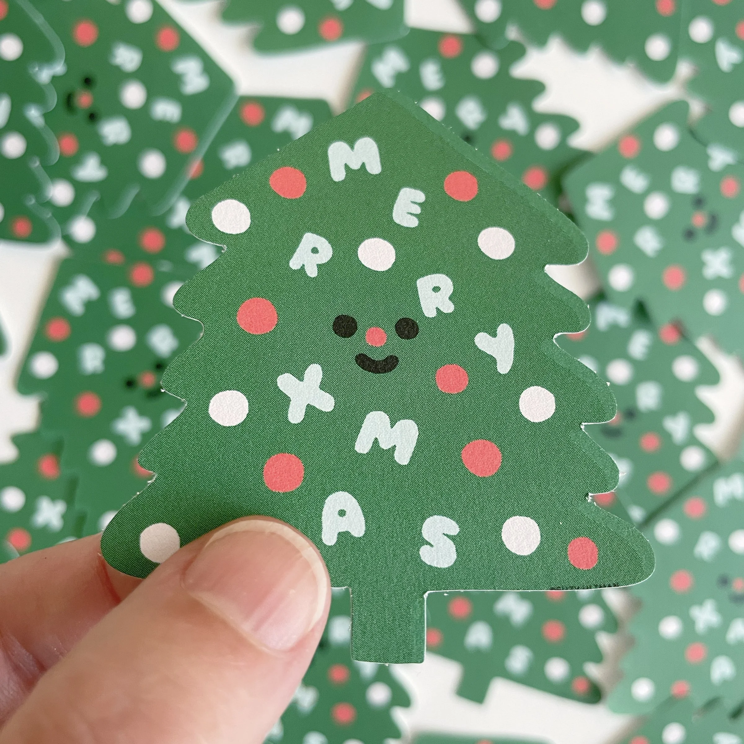 Vegan paper sticker printed on matte white, compostable, splashproof paper.